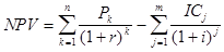 Если проект предполагает не разовую инвестицию, а последовательное инвестирование финансовых ресурсов в течение m лет, то формула для расчета NPV модифицируется следующим образом: