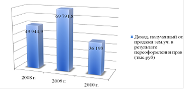 Таким образом, в 2010г. по сравнению с 2009г. доходов от продаж земельных участков на торгах поступило в 3,5 раза больше.